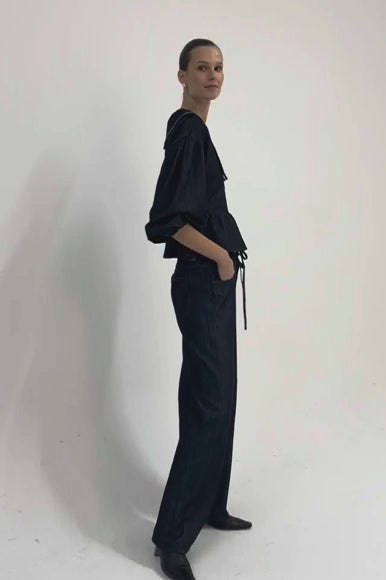 A low rise jean with a laid-back wide leg and soft tie waist - effortless and easy to style