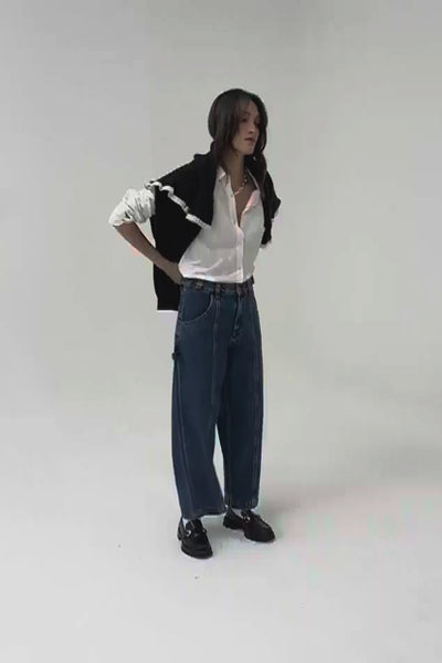 Mid-rise with a sculpted wide barrel leg; effortless drape, all-day ease