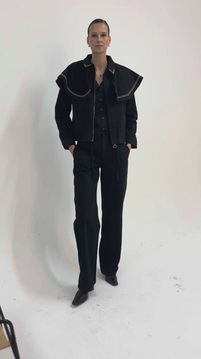 Our hero jacket - statement denim piece with a removable cape for endless styling