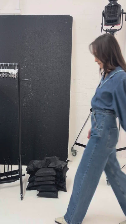 Super high-rise flare with vintage button detailing. Statement style meets perfect proportion.