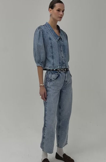Talia Collared Denim Top in Newport